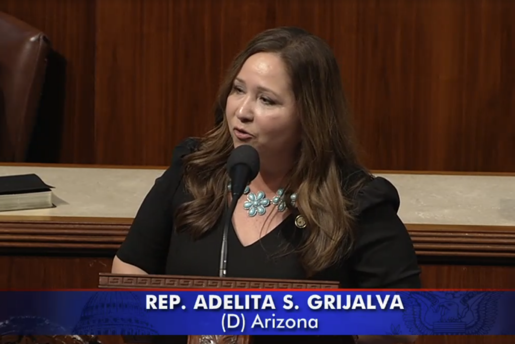Switching between English and Spanish, Grijalva paid tribute to her roots, describing herself as the granddaughter of “a hardworking Mexican immigrant who came to this country for a better life.”