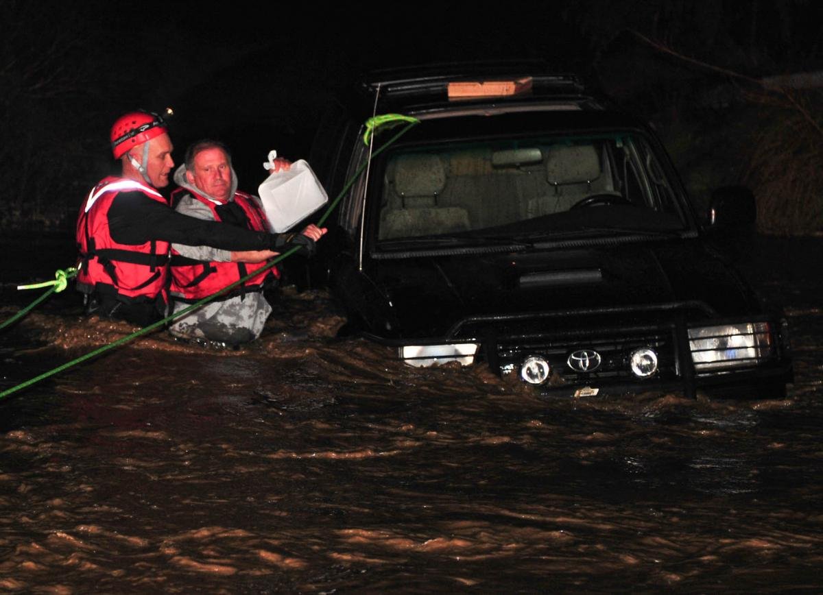 Cal Fire and the Valley Center Fire Department responded to the call at 9:21 p.. and found the vehicle partially submerged in a moving creek across from 12662 Betsworth Road in Valley Center. Firefighters trained in swift water rescue pulled both occupants to safety and no one was injured.