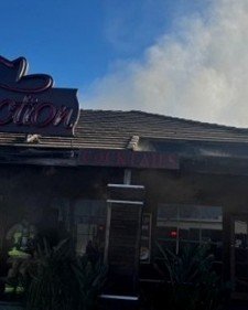The Junction restaurant sustained an estimated $1 million in damages, including substantial damage to the kitchen and smoke damage elsewhere in the restaurant, Heartland Fire & Rescue Chief John Nevin told East County Magazine. “There was nothing suspicious,” he said, adding that the cause is still under investigation.” Multiple agencies responded to the fire yesterday morning around 9:20 a.m., including San Miguel Fire, Sante Fire, and El Cajon Fire departments as well as Heartland. Crews were swiftly able to knock down the fire and save 90% of the building in a strip mall, Chief Nevin added. A UPS store next door sustained minor damage but was able to open within the hour.