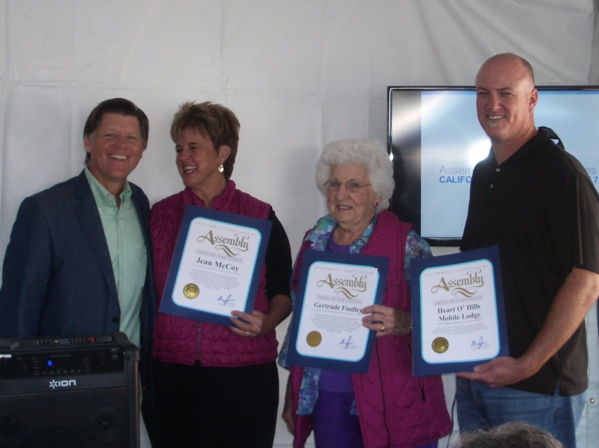 McCoy and another park owner, Gertrude Finley, were given awards for their coordination efforts by State Sen. Joel Anderson and State Assemblyman Brian Jones.