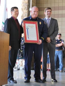 Jones, along with a representative from State Senator Joel Anderson’s office, presented a resolution from the State Legislature to commemorate Lakeside Fire Department’s 50th anniversary, which coincides with the Cedar Fire ten year anniversary.