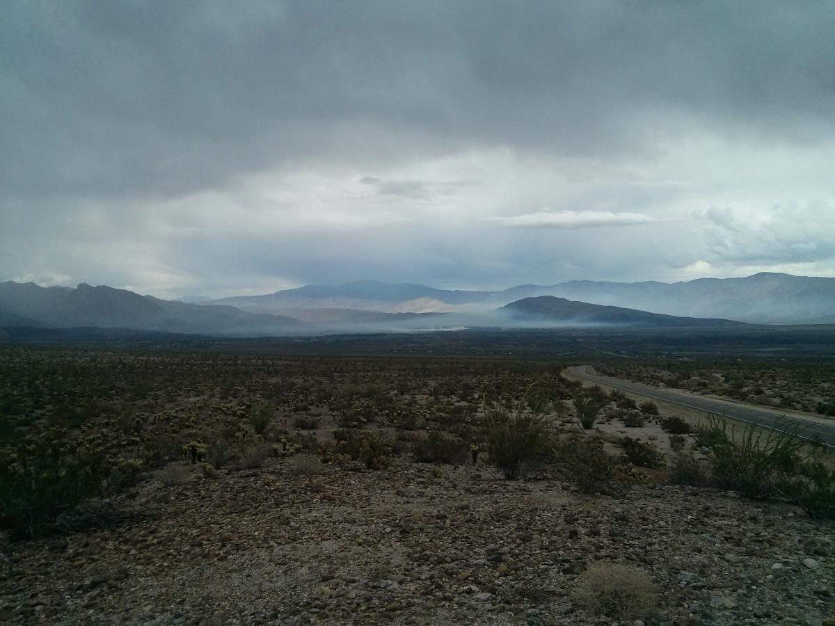 Photo by Brett Staubaum: Smoke from Borrego tree farm fire and thunderheads overhead