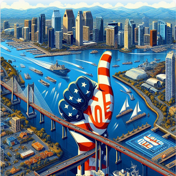 A deep fake, generated through artificial intelligence or digital manipulation, may appear to show people saying things that they never said, or appearing in places they’ve never been, like the Golden Gate bridge except on the cheap extended over a tacky monument no one needs to build (photo, right).