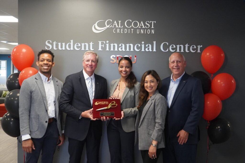 August 28, 2024 (San Diego) —  San Diego State University and California Coast Credit Union leaders held a ribbon cutting ceremony on August 21 commemorating the grand opening of the new Cal Coast Credit Union Student Financial Center.