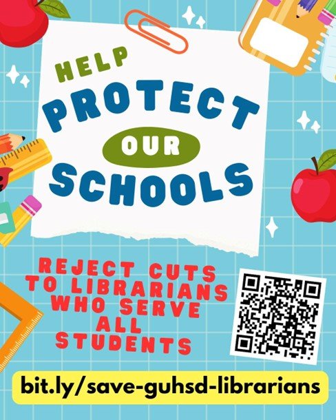 Opponents of cutting librarians have set up a website at https://sites.google.com/view/save-guhsd-librarians/home. It includes a petition which has gathered over 1,100 signatures as of late this afternoon.