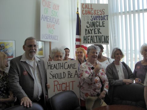 In addition, an effort to prohibit states from passing more comprehensive healthcare reform than the federal government was voted down in committee. Susan Davis (D-San Diego) , who took $270,577 in campaign contributions from the healthcare industry, voted in favor of banning states from enacting broader healthcare reforms than Congress. Her vote sparked a protest at her San Diego office by supporters of single-payer healthcare(photo), which was approved by California’s Legislature last year but vetoed by Governor Arnold Schwarzenegger.