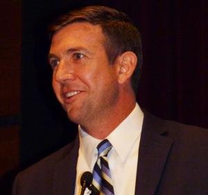 Hunter (photo, left) cited his military experience in Afghanistan and Iraq, then proceeded to blame Democrats for the Congressional stalemate. He noted he was elected in 2008 when Democrats controlled both houses and passed measures from healthcare reforms to the TARP bailout; Republicans have since gained control of the House and passed “hundreds of bills” seeking to make changes. Hunter laid out his political philosophy. “I believe in freedom for each and every one of us,” he said. “We can govern ourselves better than the government can govern us.” He added that entrepreneurship is “what makes America great” and likened the debate to “Marine Corps vs. Navy.”