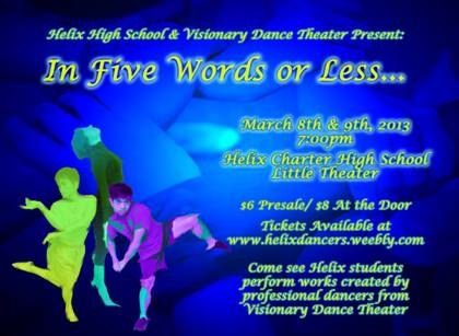 HELIX HIGH SCHOOL DANCE PROGRAM & VISIONARY DANCE THEATRE PRESENTS IN FIVE WORDS OR LESS MARCH 8, 9