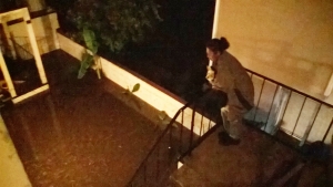 Gonzalez voiced dismay at the lack of help from any authorities as of 10 p.m. last night, while neighbors huddled outside in the cold winter night, more than five hours after the flooding began (photo, right).