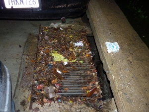 But that was not the only drain that he cleared. “I took the trash off the one behind the apartment,” he said,pointing to a Waste Management, trash bin which the torrent of water moved about four feet. Besides it lay a heap of trash.