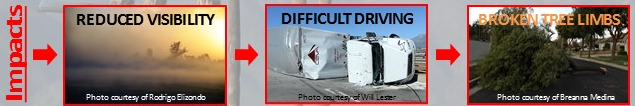 Strongest winds are expected on Monday. Expect blowing sand and dust in desert areas that will reduce visibility. Driving may be difficult in windy areas, particularly for high-profile vehicles. Be watchful for broken tree limbs; property damage is possible. In coastal areas, winds will bring hazardous conditions for small craft, high surf and strong rip currents.