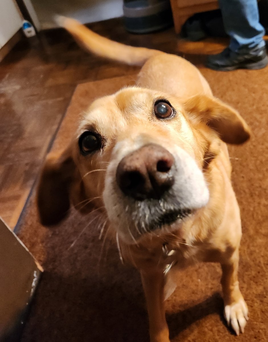 Weller, 77, who has recovered from a stroke nearly 10 years ago and is managing his heart issues, lives with his wife of 30 years, Patty, and their rescued dog Sadie Mae (photo, below right), in a house they call “Goose Creek Ranch” in El Cajon.