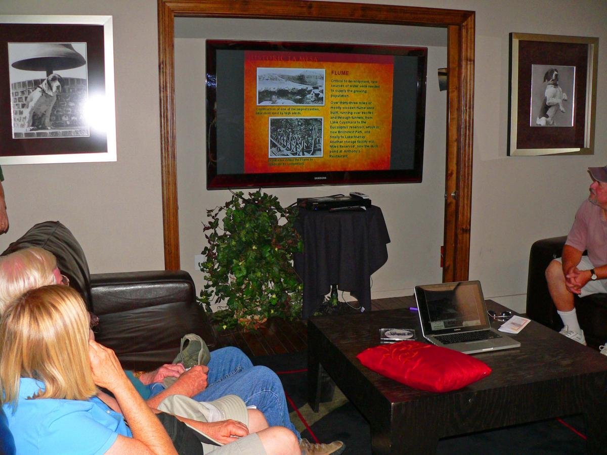 Gio’s Bistro Wine Bar, formerly the site of the original Drew Ford car dealer, is our town’s newest modern-day tavern. We head to Gio’s loft upstairs (photo, right) to watch a slideshow titled “La Mesa: The Early Years.”