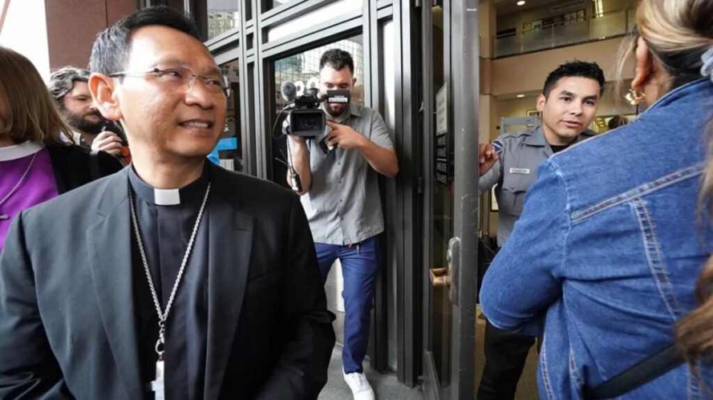 But on World Refugee Day, masked immigration agents weren’t leaning against the off-white walls, waiting to grab people. They scattered Friday after seeing a clergy delegation led by Bishop-elect Michael Pham.
