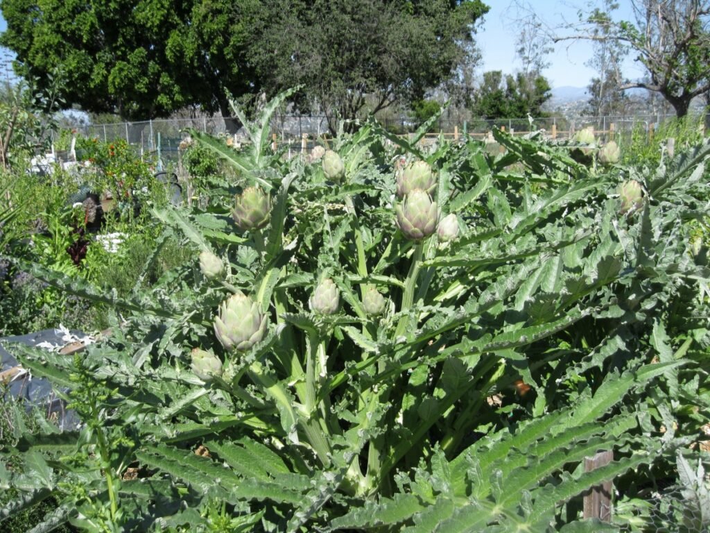 The IRC also views the garden as a place for cultural exchanges and sharing food. On the day that I visited there, I met a friendly and welcoming American woman named Vendla [Vennie] Anderson who had just retired from Kaiser. She was joking and sharing gardening tips with a jovial and equally welcoming Iraqi man named, Raad Kareem. Both had bountiful gardens, especially Anderson, who had large artichoke plants. She told me that she loved gardening  and being like an American ambassador, working with the folks there and even giving impromptu English lessons.