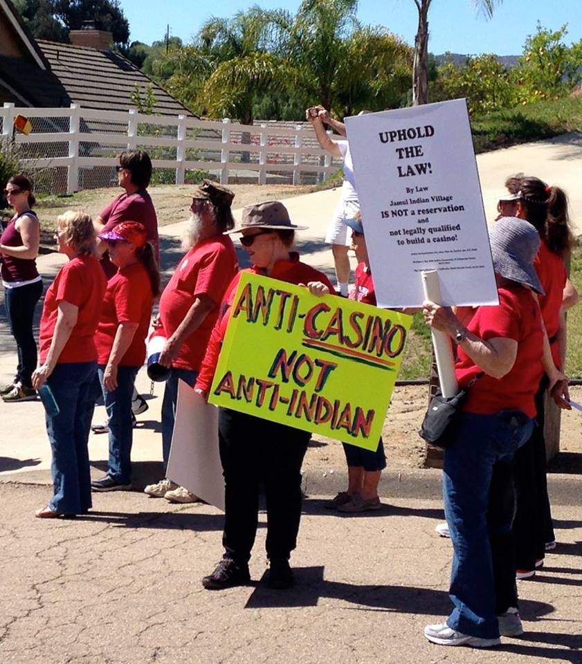 March 11, 2015 (Jamul)–Approximately 200 protesters held a “flash mob” demonstration in Jamul Saturday, wearing red as they voiced their continuing opposition to a casino under construction at the Jamul Indian Village.