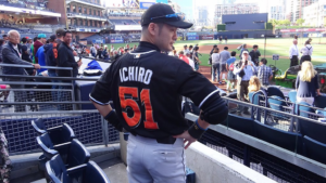 Printer-friendly version By Liz Alper Photo: if you were watching tonight’s game, you know who this is. This Ichiro impersonator delighted Pads and Marlins fans alike at tonight’s game. Courtesy @Marlins on Twitter June 13, 2016 (San Diego) – The Miami Marlins, who have kind of fallen off the face of the Earth after fighting for their 15 minutes