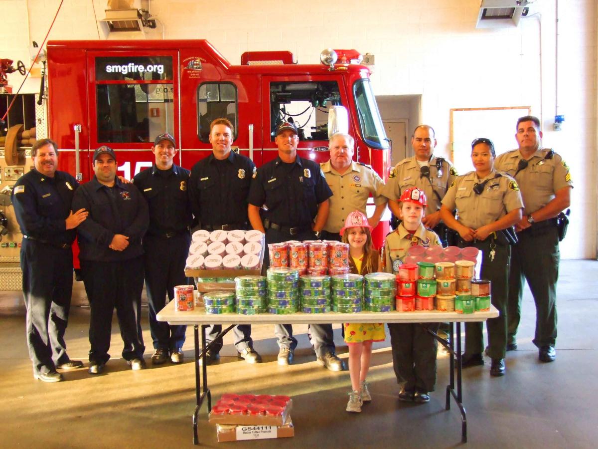December 2, 2010 (Spring Valley)—Firefighters and Sheriff Deputies received a special gift on November 16. Elizabeth Swoyer, a Brownie with Troop 6107, and her brother Nathan, a Webelo Scout, stopped by San Miguel Fire Station 15 in Spring Valley to present firefighters and Sheriff’s officials with the fruits–or rather, nuts–of their their labor.
