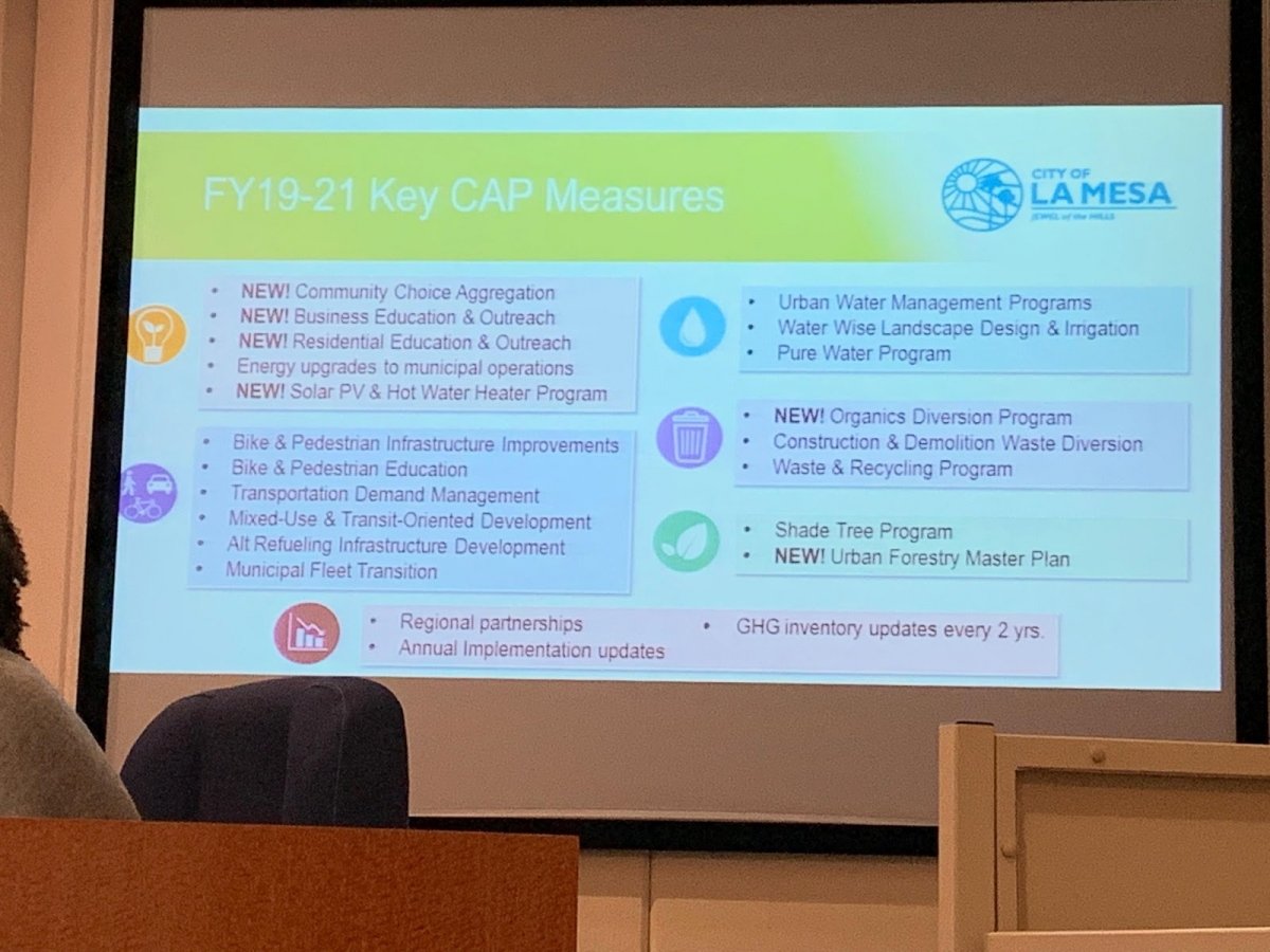February 28, 2019 (La Mesa) – With a packed agenda, the La Mesa City Council addressed concerns of increased homelessness, the ongoing housing crisis, and the City’s action plan to meet 2020 and 2035 greenhouse gas reduction goals.