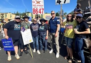 San Diego’s Waterfront Park No Kings organizer Wendy Gelernter said that San Diegans from every generation came together around one simple truth: “There are no kings in America,” she said, then concluded, “We showed that his movement is growing, that what unites us is stronger than what divides us, and that’s we’re taking action every day — through boycotts, advocacy, support for our neighbors and at the ballot box.”