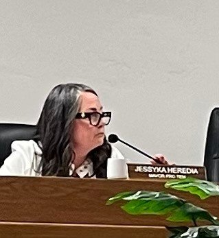 Photo, left, by Armando Rasing II: Mayor Pro-Tem Jessyka Heredia at the latest city council meeting