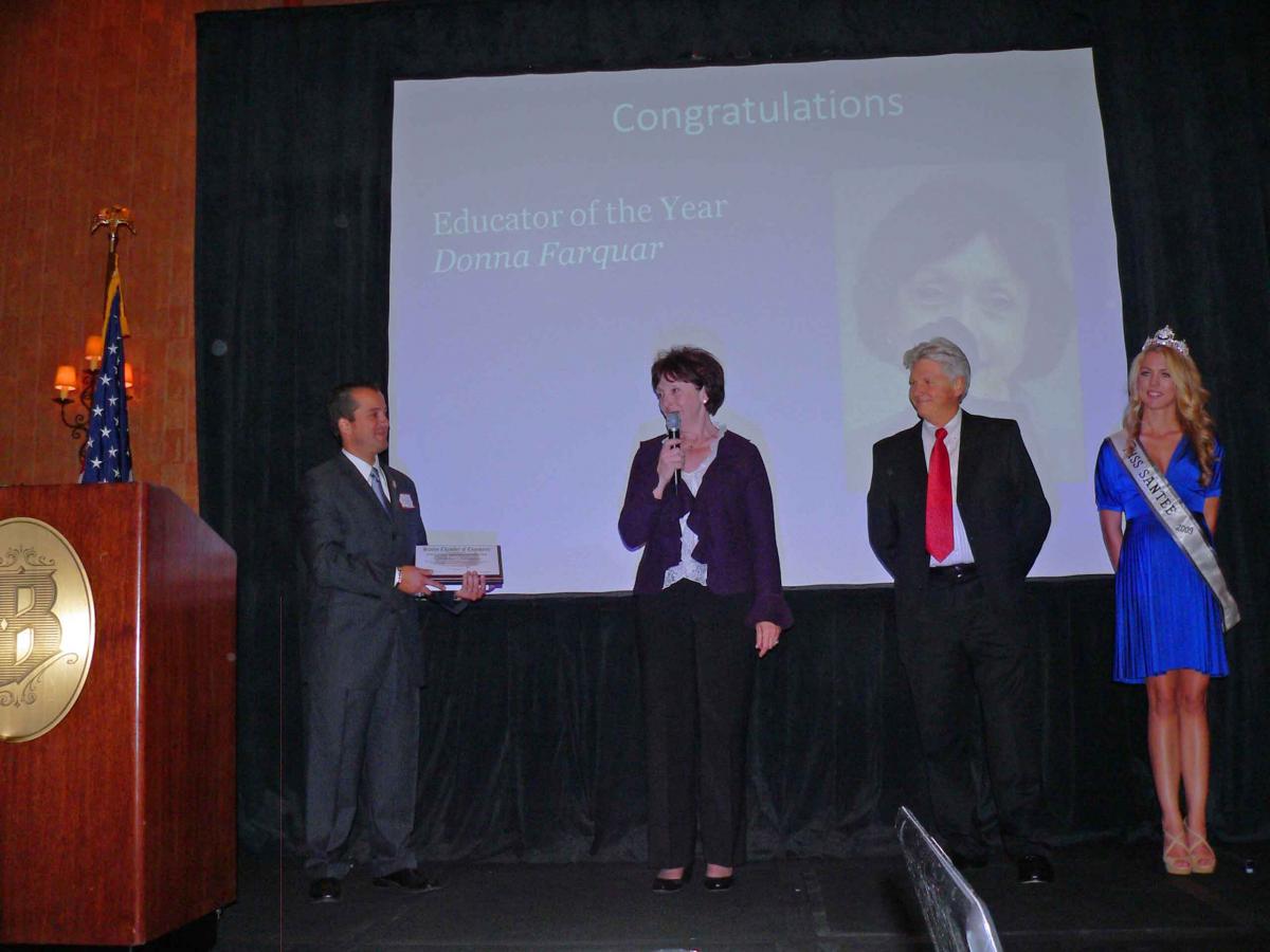 Donna Farquar, Santee School District’s resource coordinator for its English learner program, was also honored. Farquar has also been named 2009 Santee School District teacher of the year and was a finalist in the San Diego County teacher of the year awards.