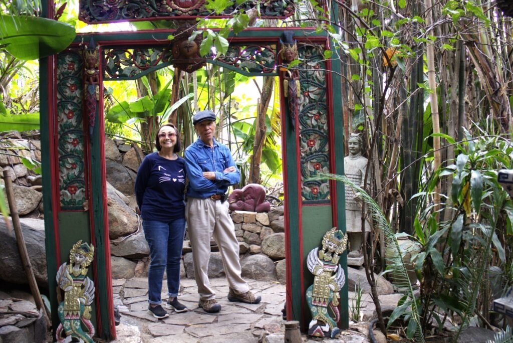 Bob and Carole Caparas say some of the garden’s extras, like fossilized footprints, totem poles and a hand-painted doorway that takes you from one land to another, have come from purchases from far away as well as local second-hand stores, thrift shops and swap meets.