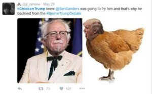 TRUMP BACKS OFF DEBATING SANDERS, PROMPTS #CHICKENTRUMP MOCKERY ON TWITTER