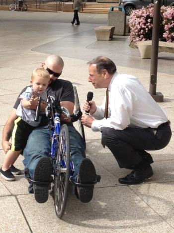 Fahn brought his son, Bentley, to meet the Mayor.  Fahn says his new handcycle will allow him the mobility he needs to get around quickly, especially as the father of a toddler.