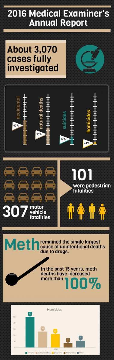 MEDICAL EXAMINER: PEDESTRIAN, METH DEATHS UP IN 2016