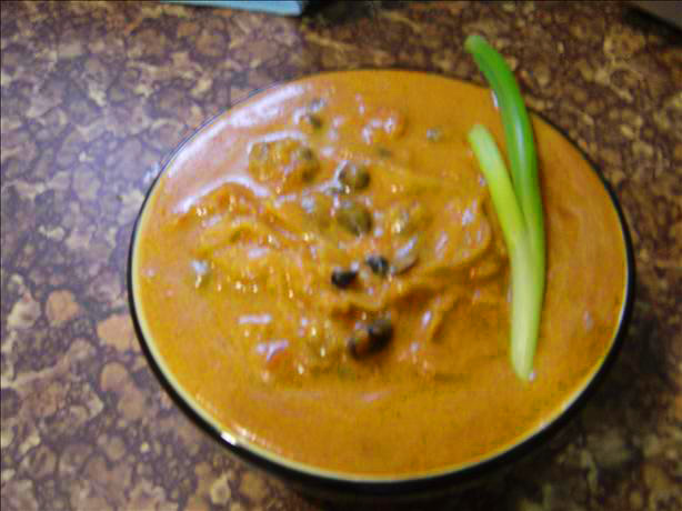 3. Puree the beans and tomatoes with half of the vegetable broth. Add pureed ingredients, pumpkin and rest of broth to your pot.
