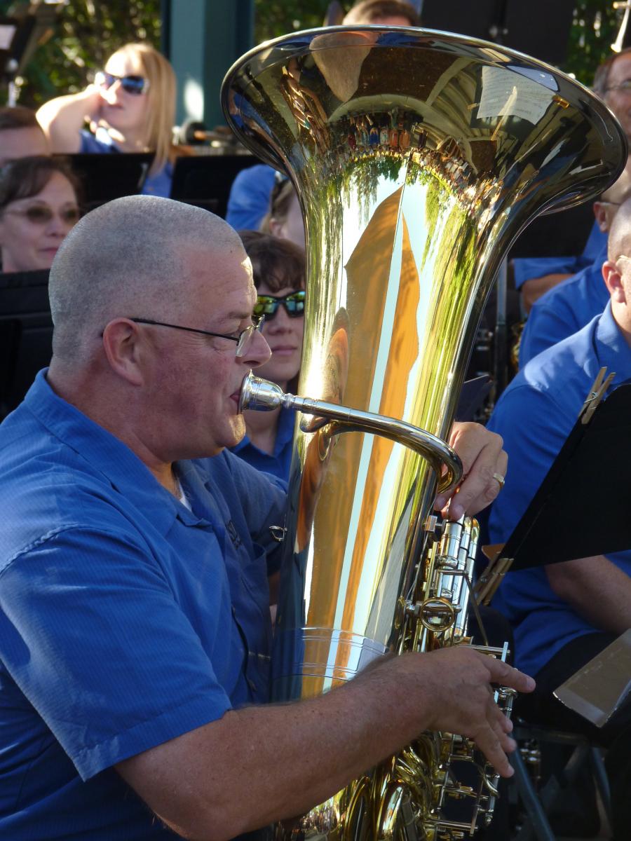 The Purple Carnival March by Harry L. (Harold) Alford was performed by a low brass quartet of 2 euphoniums and 2 tubas, as arranged by Paul Hemond who plays euphonium in the Band. The quartet combination provided unexpected colorings and technical prowess from the musicians. (photo, right)