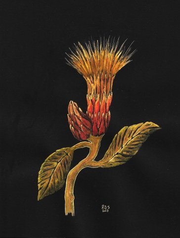 Roger Sorrell ~ Watercolor – Roger is a plant portraitist who aims to portray the dreams of plants: their spirituality, dynamism and inner character. He has a background in botany, art history, and botanical painting. For many years in Hawaii, Roger worked in a laboratory where he helped endangered native plant species from extinction. He uses vibrant watercolors and ink on black paper to portray plants and flowers in a manner that makes them come alive with inner luminescence and radiant drama. Sometimes his paintings allude to fine art styles of earlier historical periods such as art deco, Pre-Raphaelite, or Post-Impression in their ability to accent the drama and individuality of the plant species. To see Roger’s paintings is to take a journey through an enchanted floral world using an artistic lens to reveal its mysterious, magical beauty.