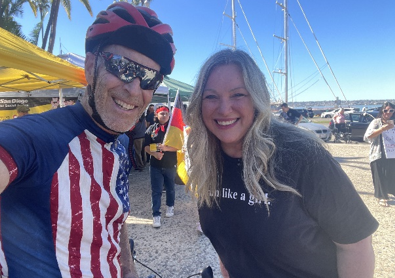 Several public officials turned out. Supervisor Monica Montgomery-Steppe spoke at Waterfront Park. Mark Robak, Otay Water Board member, posted on Facebook, “Rode by a pro-democracy gathering. They were all very well behaved and focused on the Constitution. Of course, I was dressed appropriately and riding my Vintage, made in America, Schwinn!”