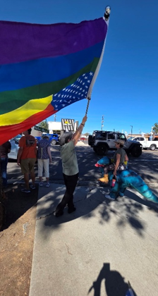 On Facebook, Mitchell Sterling wrote, “Even our quiet, sleepy, tiny town of Borrego Springs, California turned out nearly 200 protestors on No Kings Day (10/18/25) to demand trump and his lawless administration’s removal and the restoration of Democracy!”