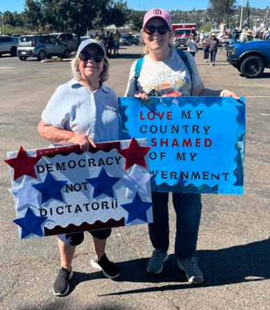 Photo,right: Erica Wyse and her mom came from Alpine to participate in the El Cajon protest.
