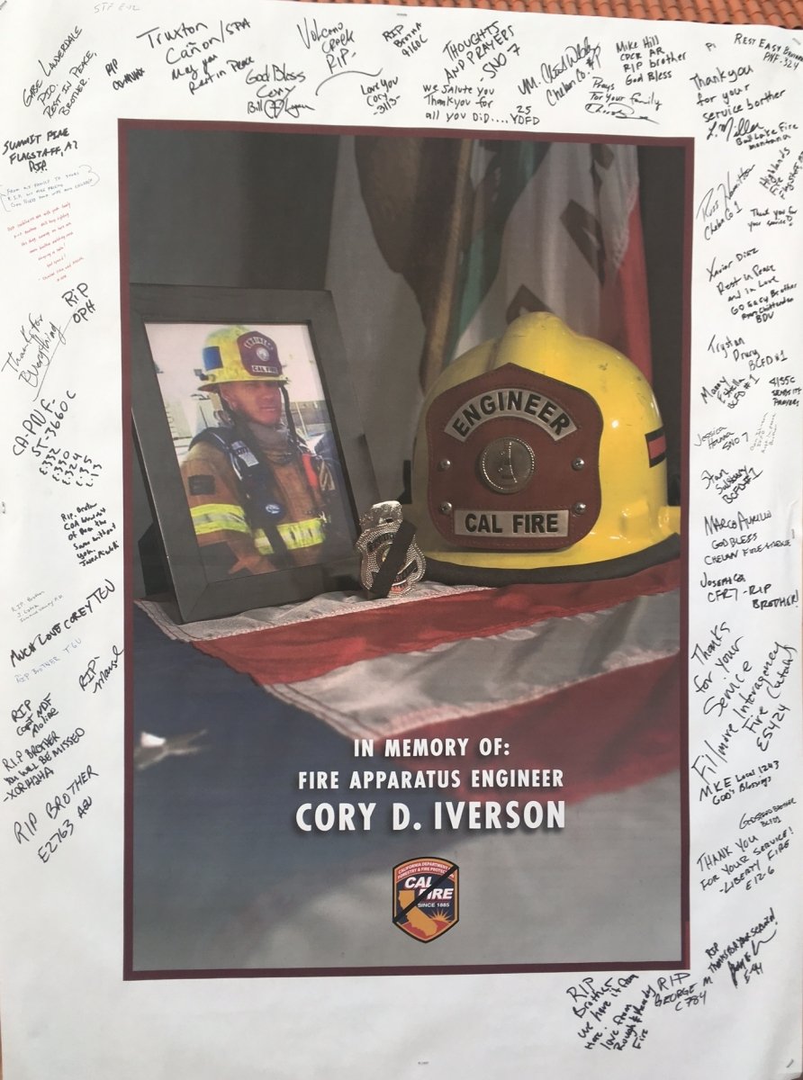 Printer-friendly version By Miriam Raftery December 14, 2017 (Dulzura) – Cal Fire engineer Cory Iverson, 32, who was stationed in Dulzura, has died of injuries sustained fighting the Thomas