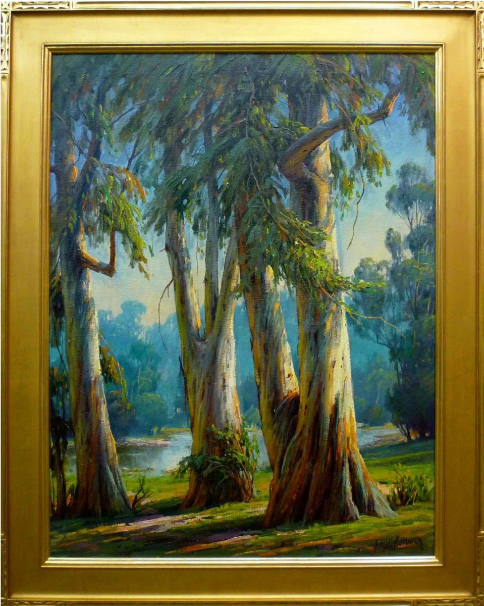 A notable new addition is a 1940 Paul Grimm painting, "Stately Eucalyptus" measuring 36 x 28 inches (photo, left). Originally a painter of Hollywood studio sets in the silent movie era, Grimm studied in Dusseldorf and later moved to Palm Springs, where his art gallery attracted many celebrities who purchased his works.