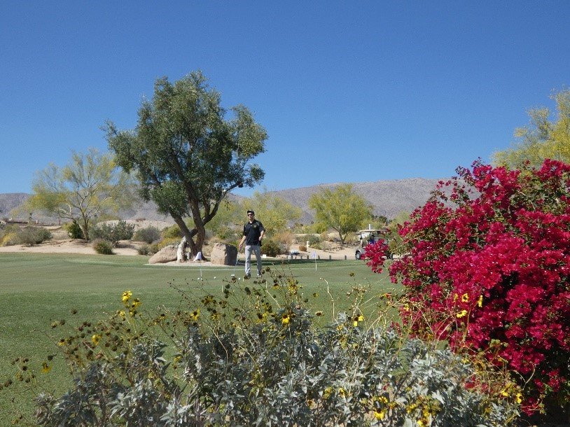 There are places to play golf — including deAnza Desert Club and Rams Hill Golf Club. Rams Hill Golf Club is an 18-hole Tom Fazio-designed course with breathtaking views and challenging play. It even has a stream running through it.