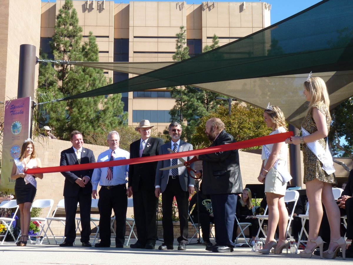 During the city’s centennial in 2012, Mayor Lewis reflected on how the city had changed since its founding a century earlier “when they ran pigs down Main Street and advised flume rides all the way from Cuyamaca to El Cajon.” The Mayor cut a ribbon to celebrate the opening of Centennial Plaza near City Hall.