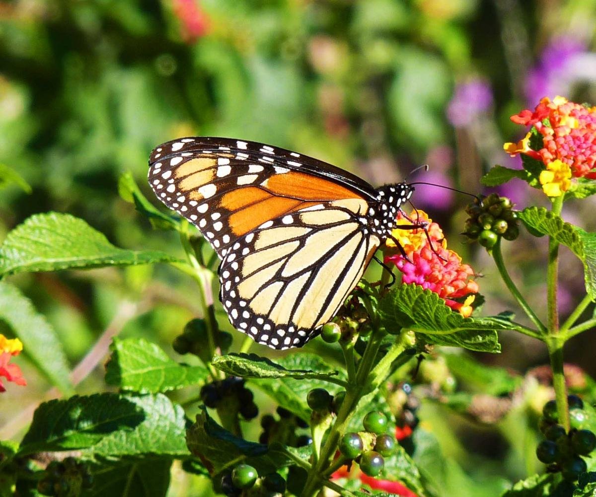 November 8, 2011 (San Diego’s East County) — ECM editor Miriam Raftery snapped this colorful image of a monarch butterfly on a lantana plant at the backyard of a home near San Diego State University on last weekend’s Sustainable Homes Tour.