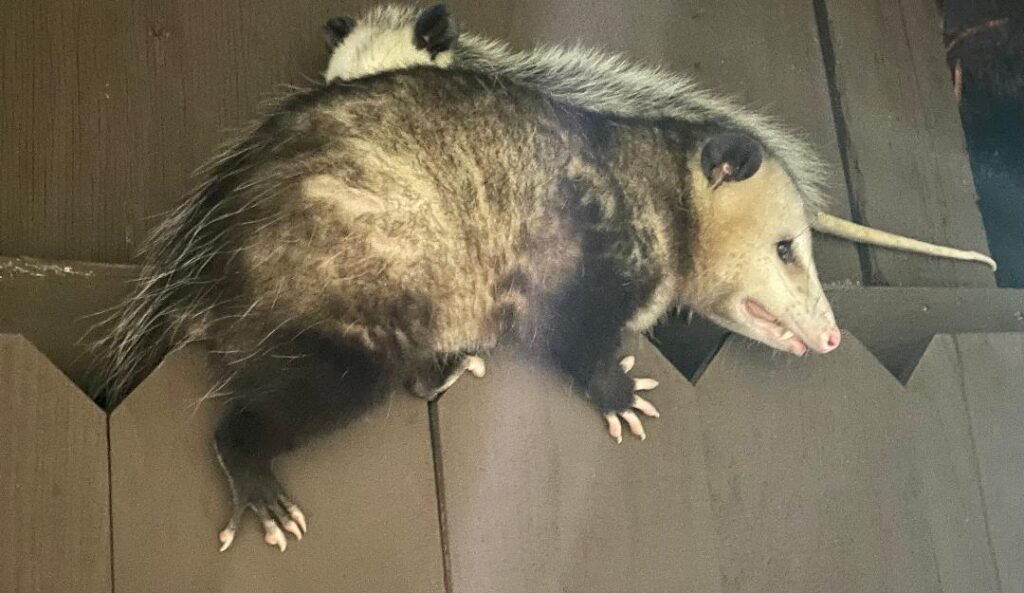 April 4, 2025 (La Mesa) – Cailin Acosta spotted these playful opossums on the fence in her La Mesa yard.