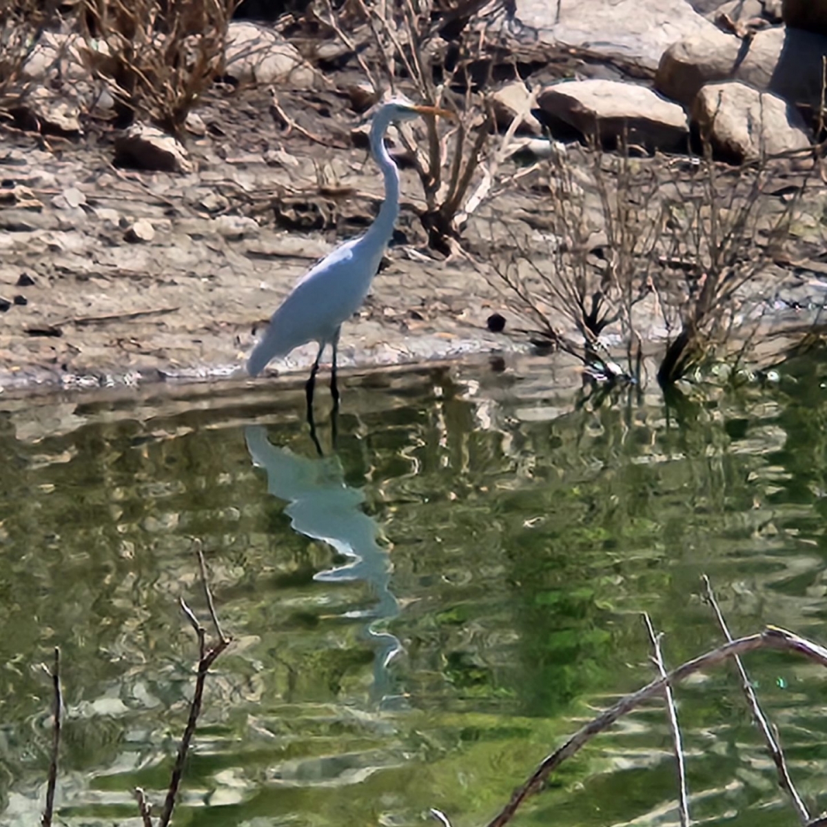 Photo of the week: Egret at Lake Morena amid dead plants and green water