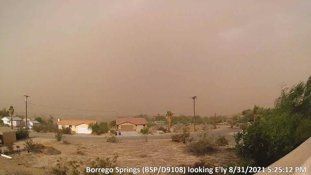 Printer-friendly versionEast County News Service August 31, 2021 (Borrego Springs) – “Strong thunderstorms east of Borrego and subsequent downdrafts has created a Haboob in Borrego Springs, see progression below over several minutes,” says Bob Kutscher, who sent in these photos. A haboob is an intense dust storm carried on an atmospheric gravity current or weather front; haboobs occur commonly in