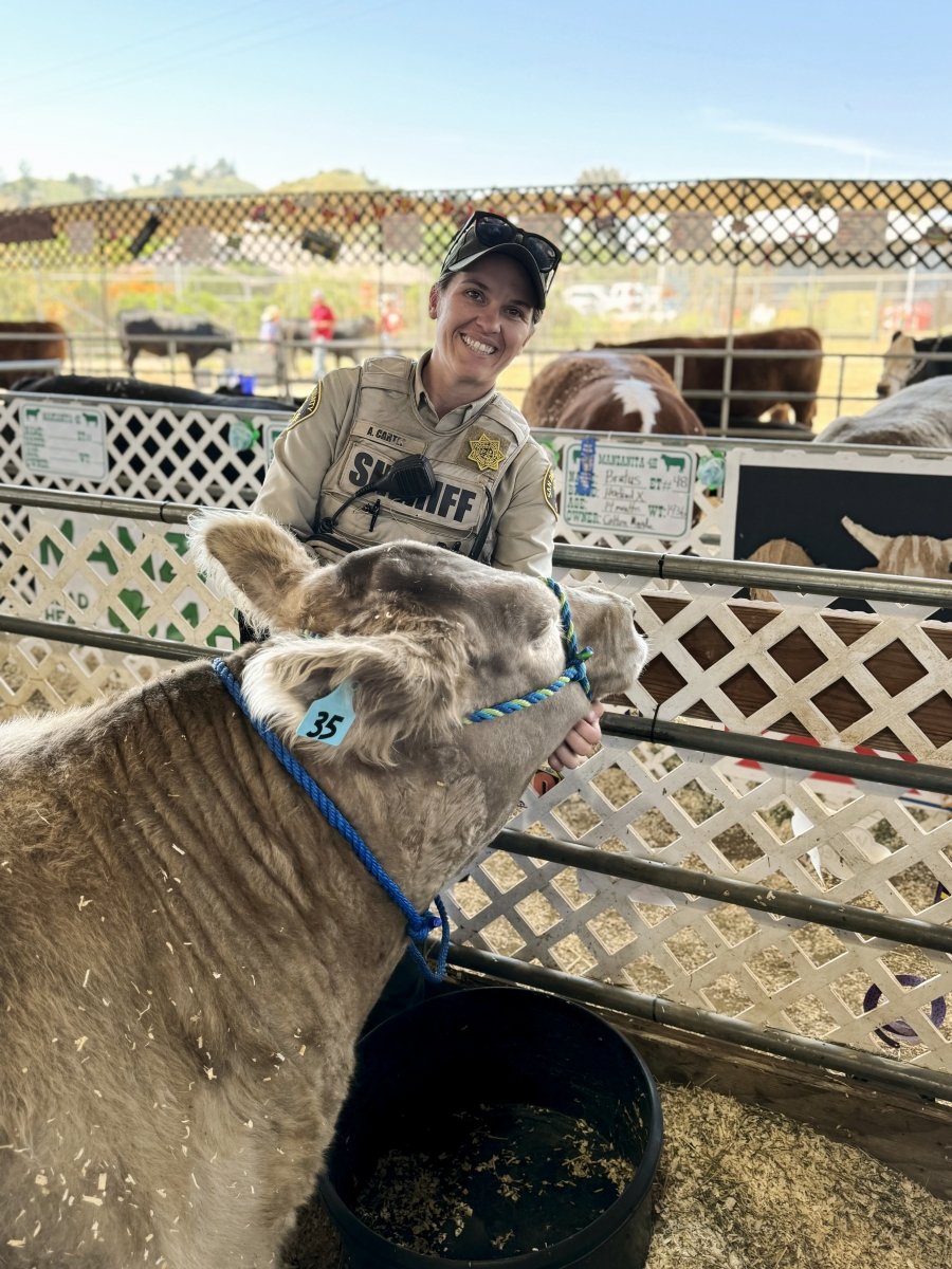 Printer-friendly versionEast County News Service May 29, 2024 (Lakeside) — Shiloh Ireland sent in these photos of Sheriff’s Deputy Carter at the Eastern San Diego County Youth Fair at the rodeo grounds in Lakeside last week, where a livestock auction was also held. The annual fair has representation of FFA, 4H and Grange with sheep, goats, swine, cattle, ducks,
