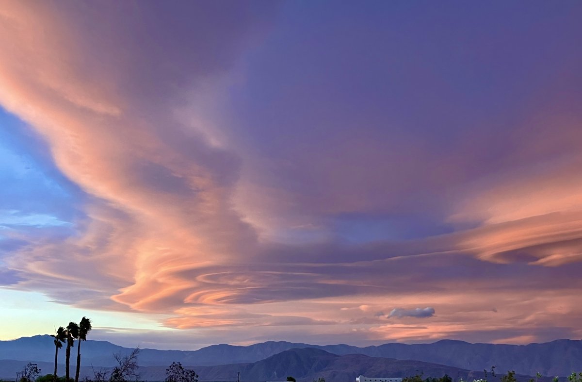 Printer-friendly version May 7, 2024 (Borrego Springs) – Mitchell Sterling sent in these dramatic images showcasing natural spectacles in the Anza-Borrego Desert. The dramatic desert sunset features lenticular clouds; the rainbow is over the San Ysidro Mountains on the western end of Borrego Springs.. Both shots were taken on May 4 from his driveway in the Ocotillo Heights neighborhood of