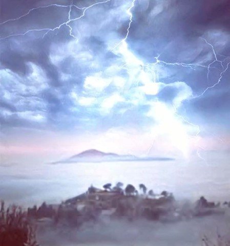 Printer-friendly version August 20, 2023 (San Diego’s East County) –Michael Adam Cohen, award-winning entertainment reporter and photographer, shot these surreal images of a lightning storm over Cowles Mountain, as Tropical Storm Hilary drenched our region. The first image, viewed from Mt. Helix, makes Cowles Mountain appear to be an island floating in a foggy sea. In reality, those are clouds obscuring
