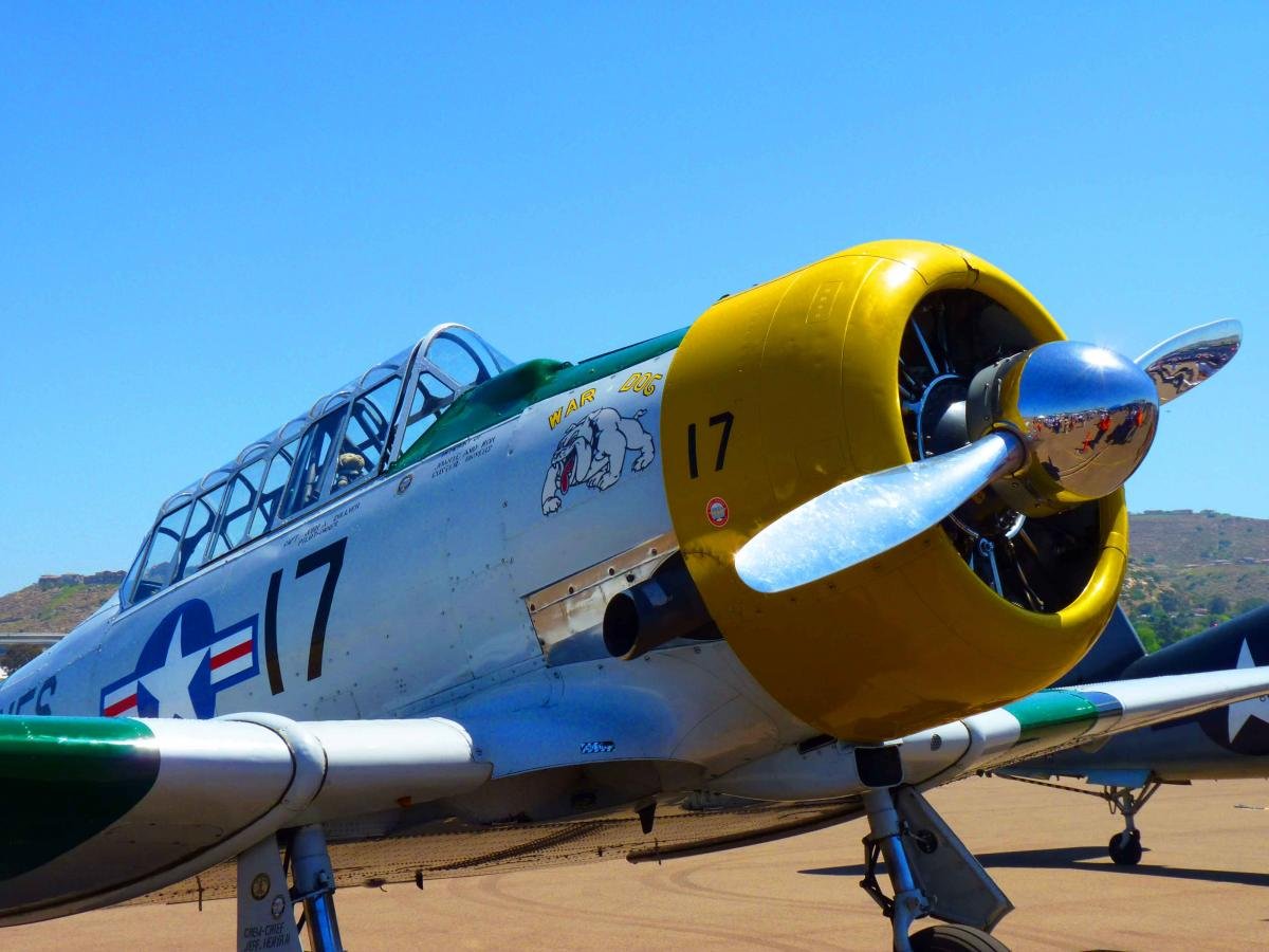 Below: War Dog on display at Wings Over Gillespie Air Show in El Cajon, where pilot provided an aerobatics show to delight guests. Photo by Miriam Raftery.