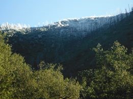 The newsflasher and bottom left image is taken through a frosty windowpane at Harrison Serenity Ranch, a retreat on Palomar Mountain at an elevation of 3,500 feet. The top two images show a ridgeline higher up on Palomar Mountain, around 4,000 feet elevation, in the Cleveland National Forest near Palomar Mountain State Park.