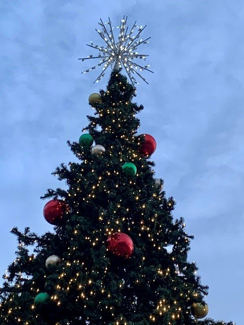 A star sparkles brightly atop the community Christmas tree in downtown El Cajon (photo, right, by Robert Gehr)